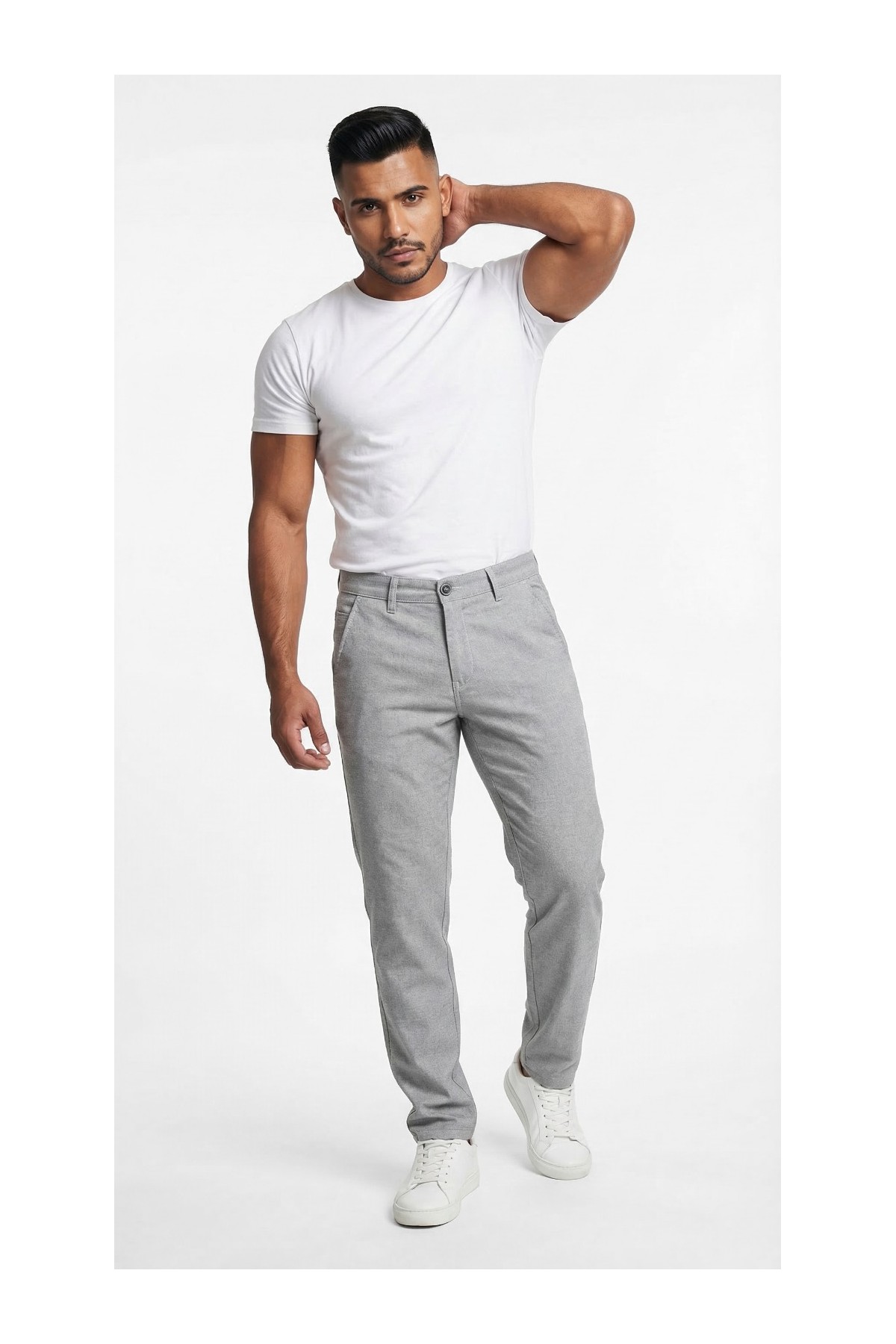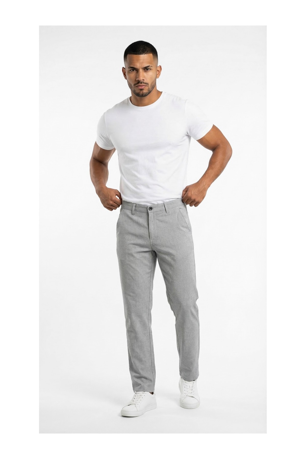 Spodnie CORTE GREY to klasyczny model spodni. Krój jest luźny, idealny dla klientów z rozbudowanymi udami oraz łydkami. Do uszycia spodni wykorzystano najwyższej jakości materiały takie, mocne, wysokiej jakości nici, eleganckie i stylowe guziki. Stylistyka jest klasyczna i elegancka.